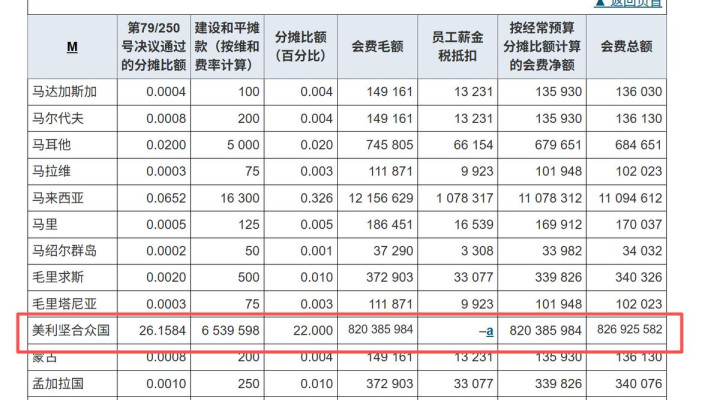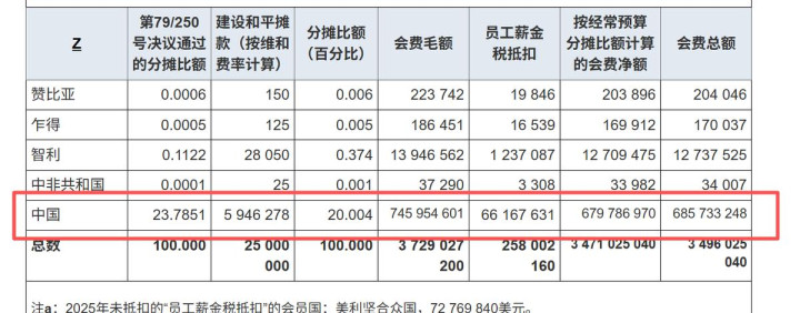 近两年,中方的缴纳占比一再上涨,已经成为了仅次于美国缴纳额度第二大的存在,甚至比不少发达国家还多。